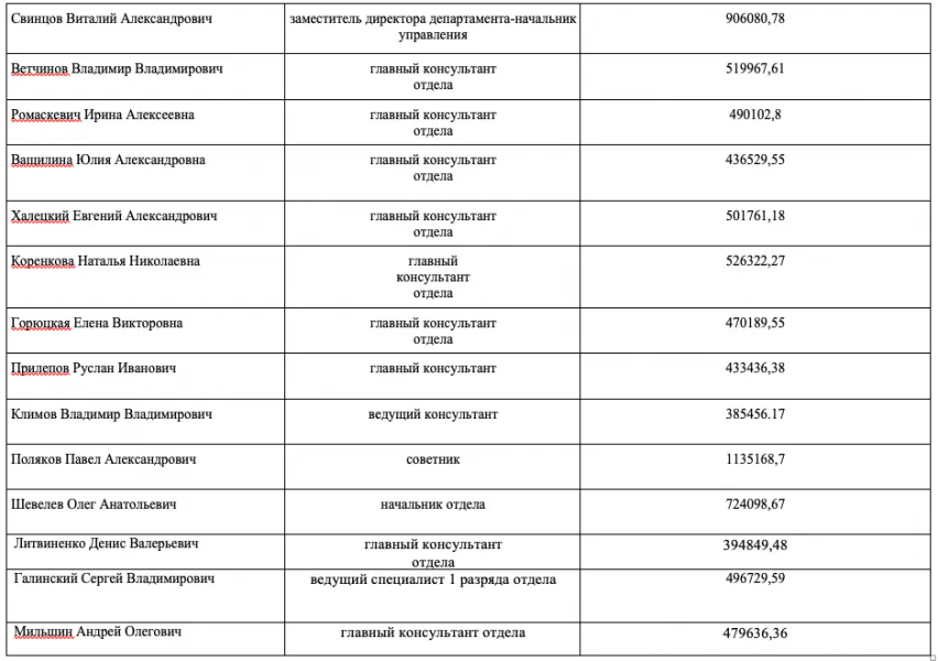 Также среди миллионеров отметился ушедший в отставку глава департамента Игорь Кириченко, заработавший доход в 1,351 миллиона рублей, а его заместитель Андрей Казорин – 1,219 миллиона рублей соответственно. Не заметили наши коллеги с телеканала "Городской" доход в 1,135 миллиона рублей советника группы по вопросам мобилизационной подготовки и специальной работы департамента внутренней политики Полякова Павла. Заключительным миллионером департамента за 2018 год оказался начальник отдела национальной политики и работы с политическими партиями и общественными объединениям Юрий Токаев – 1,011 миллиона рублей.