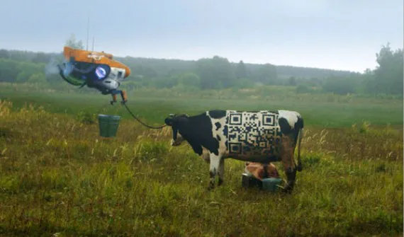 Изюминкой ролика «Русская кибердеревня» стала русская кибернародная песня «Полетели коптеры, полетели сизые». Беспилотные летательные аппараты – те самые коптеры – уже сейчас стоят «на вооружении» агрохолдинга «Мираторг», который управляет крупнейшим в мире стадом специализированной мясной породы абердин-ангус – поголовье на 108 фермах в Брянской, Калининградской, Калужской, Орловской, Смоленской и Тульской областях превышает 800 тысяч. голов. Фермы размещены на обширной территории, площадь каждой составляет порядка 5 тысяч гектаров.