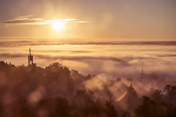 На фото: рассвет над туманным Брянском