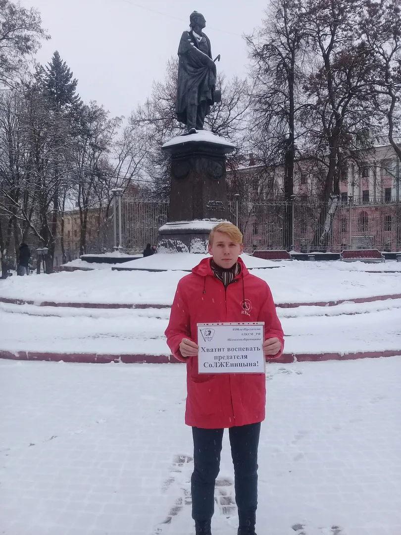 Вчера, 11 декабря, в рамках всероссийской акции против увековечения памяти писателя-антисоветчика Александра Солженицына, в день его 100-летия, комсомольцы Брянщины провели серию пикетов в областном центре.