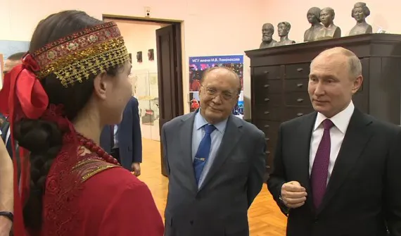 Глава государства встретился со студентами главного вуза страны. В ходе встречи одна из студенток, в честь Года театра, спела Президенту куплет песни из фольклорного наследия Брянщины.