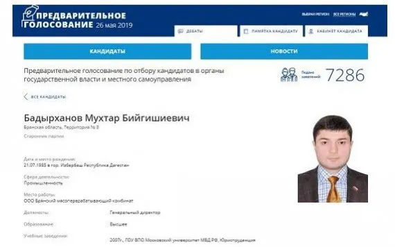 На фото: М.Бадарханов ещё участник голосования. Сейчас эта страничка уже удалена на сайте праймериз".