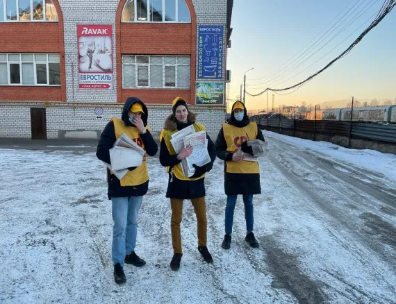 Брянские активисты партии "Справедливая Россия" раздавали газеты