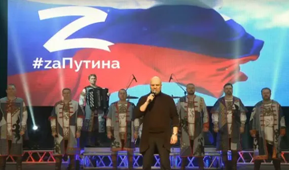 Артисты выступили на сцене филармонии на фоне триколора и хэштега «zaПутина».
