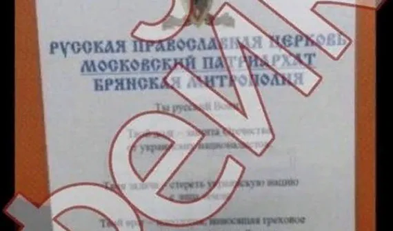Логотип, бланк и печать, на котором изготовлена листовка, не соответствуют логотипу, бланку и печати военного отдела Брянской епархии, что указывает на фальсификацию. Также в листовке нет личной подписи руководителя отдела.