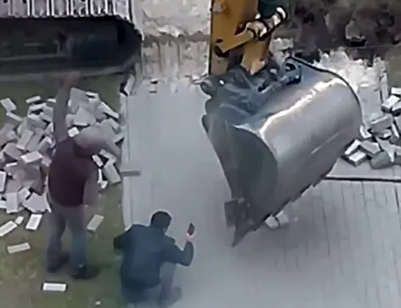 В действительности рассмотреть удалось ли водителю землеройной машины исполнить трюк, не представляется возможным, так как видео снято сверху из квартиры многоэтажного дома.