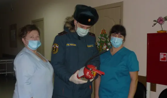 Также сотрудники МЧС провели инструктаж с персоналом, детьми и пациентами. Вручили памятки по пожарной безопасности и безопасности на водных объектах.