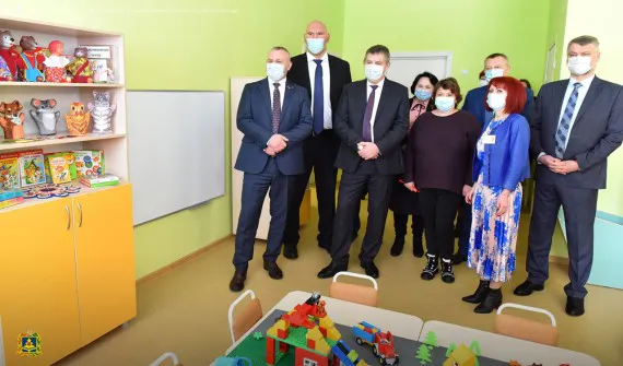 Сегодня в посёлке Большое Полпино к детскому саду " Ягодка" открылось современная пристройка на 55 мест. Губернатор Александр Богомаз осмотрел дошкольное учреждение.