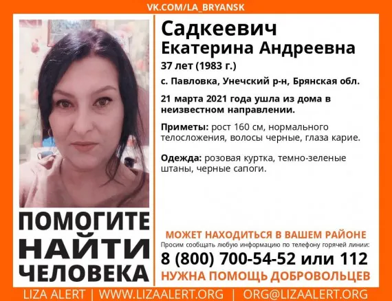 Сегодня, 25 марта, в социальной сети Вконтакте сообществе «ЛизаАлерт» сообщили, что нашли живой пропавшую Екатерину Садкеевич.