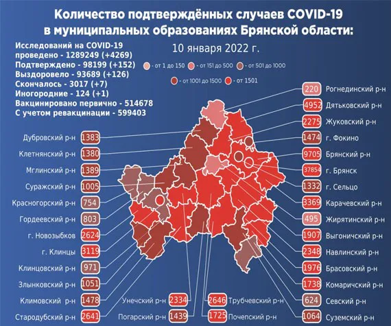 За минувшие сутки брянские медики провели 4269 лабораторных исследований на коронавирусную инфекцию, выявив 152 новых случая заболеваемости.