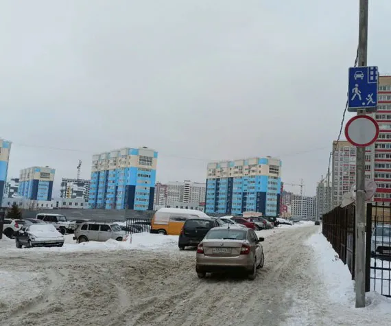 В начале межквартального проезда установили дорожные знаки «Движение запрещено», «Жилая зона» и «Конец жилой зоны».