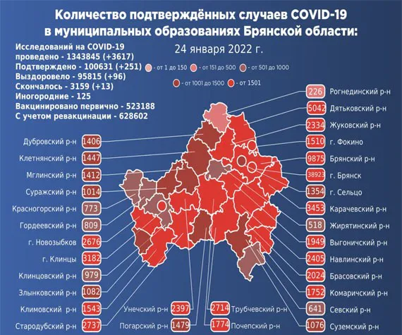 За минувшие сутки брянские медики провели 3617 лабораторных исследований на коронавирусную инфекцию. Диагноз подтвердился у 251 пациента.