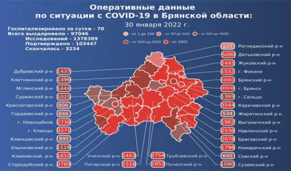 За минувшие сутки брянские медики провели 9664 лабораторных исследования на коронавирусную инфекцию, выявив 724 новых случая заболеваемости.