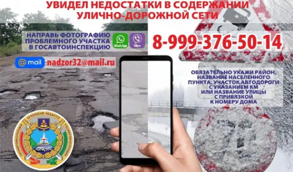 Также пожаловаться на убитую дорогу можно по электронному адресу nadzor32@mail.ru.