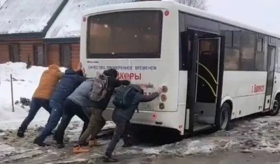 Напомним, выталкивать его из снежной каши со льдом пришлось пассажирам.