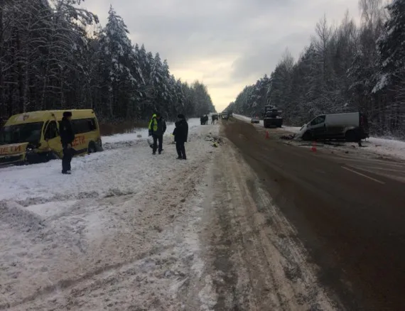 По предварительной версии, 21-летний водитель «Камаза», не соблюдая дистанцию, врезался в заднюю часть микроавтобуса «Опель-Виваро». В результате столкновения микроавтобус выехал на встречную полосу и врезался в автобус «Пежо».