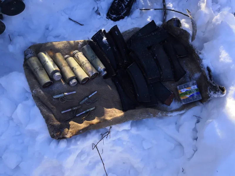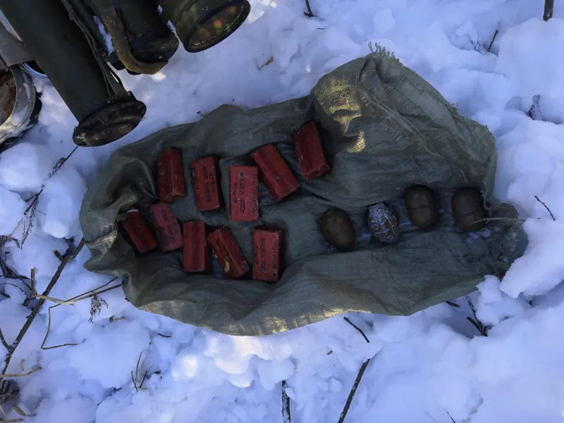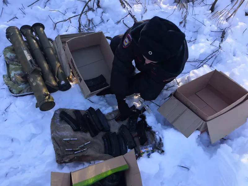 Сотрудниками были изъяты два гранатомета, огнемет, две винтовки, гранаты, взрывчатка, около 1500 патронов, а также части огнестрельного оружия.