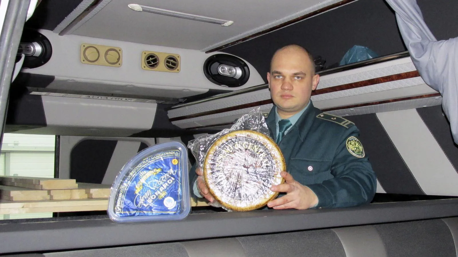 Тайник был забит дорогими сырами, элитным парфюмом, брендовой косметикой и платьями. Всего было изъято более 300 кг итальянских, французских и английских сыров, 243 упаковки духов и косметики, а также 75 платьев. Контрабандист признался, что намеревался реализовать товар в Подмосковье.