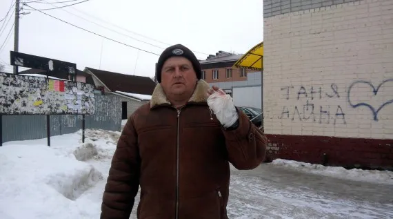 Инцидент произошел на жуковском рынке – там работает Владимир Чесалин, продает обувь. Вот что рассказал Чернову сам пострадавший по телефону: "Когда я пришел на работу и занял свое рабочее место, ко мне подошли двое - один в синей куртке плотного телосложения, круглолицый, около 178 см ростом, и нанес мне удар со спины в область почек. Другие сбили с ног и, продолжая бить уже лежачего, угрожали мне убийством за мои видео и текстовые публикации про незаконные захваты береговых полос. Я как-то смог достать телефон, они струхнули и стали убегать. Я за ними пытаясь снять лица. Но они изначально натянули на головы капюшоны - так, что были видны только глаза".