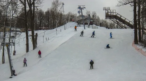 На фото: горнолыжный склон в спортпарке «Лапландия»
