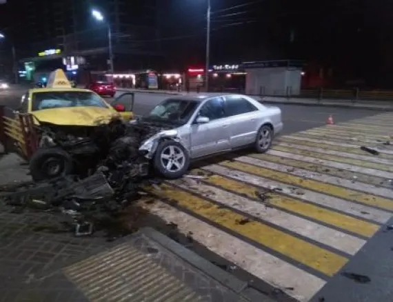 Вчера в 00-43 в районе дома 65 по ул. Дуки г. Брянска 20-летний водитель автомобиля Ауди A8 не справился с управлением и вылетел на встречку. После этого он влетел в Рено Логан (такси «Uber»), после чего Ауди отбросило на автомобиль Фольксваген Поло (такси «Яндекс»). В результате ДТП пострадали водители трех автомобилей и 23-летний пассажир автомобиля Рено.