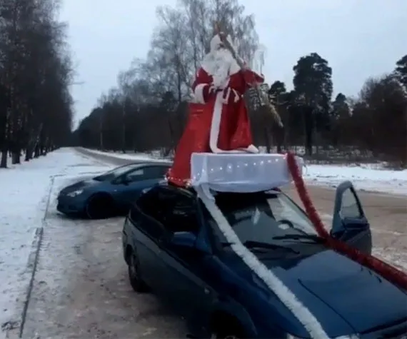 Инцидент произошел 30 декабря. Дед Мороз с крыши машины поздравлял клинчан с наступающим Новым годом.