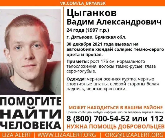 В Дятьково завершились поиски 24-летнего Вадима Цыганкова.