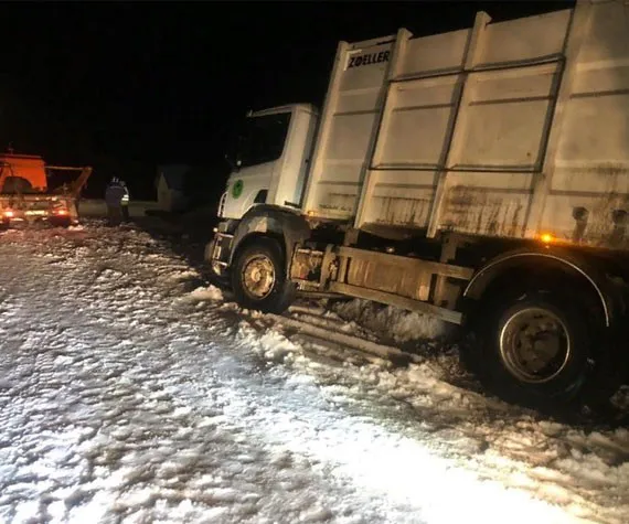 В Севском районе 15 часов вызволяли застрявший в снегу мусоровоз