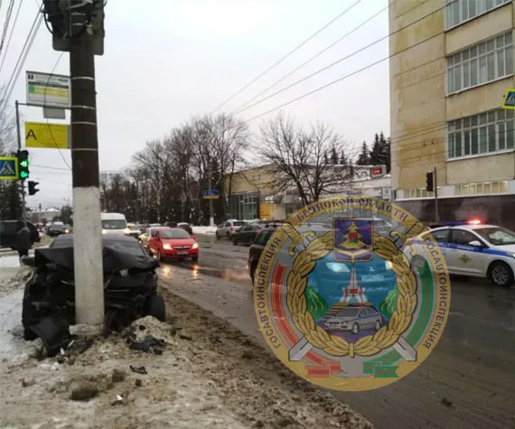 После ДТП на Красноармейской в Брянске Volkswagen врезался в столб