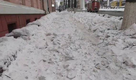 Тротуар по улице Фокина в Брянске завалили ледяными глыбами