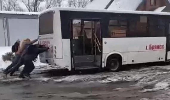 Пассажиры вытолкали застрявший на Флотской в Брянске автобус