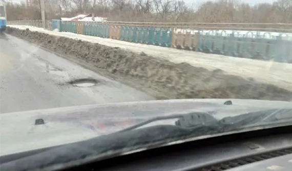 Снег сошел вместе с асфальтом на путепроводе Брянск II в Фокинском районе.