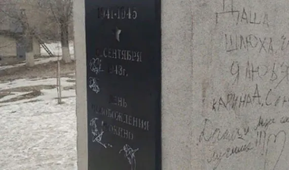 12 марта жители Фокино Дятьковского района обнаружили на памятнике в сквере Победы, отремонтированном в 2018 году, непристойные надписи.